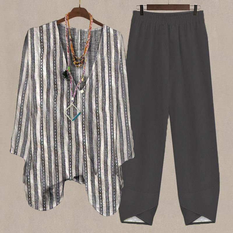 This Classy Striped Two Piece Set boasts a sophisticated design perfect for any occasion. The timeless stripes add a touch of elegance while the two-piece style allows for versatile wear. Crafted with high-quality materials, this set provides both style and comfort. Elevate your wardrobe with this must-have piece.